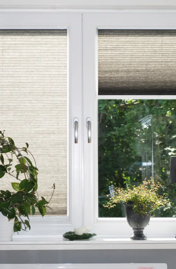 Gracias a su diseño estilizado y a sus ingeniosos cierres, puede aplicar las cortinas plisadas a la mayoría de las ventanas y puertas de tamaño pequeño o mediano. El producto ocupa un espacio mínimo y puede integrarse en el marco de la ventana.